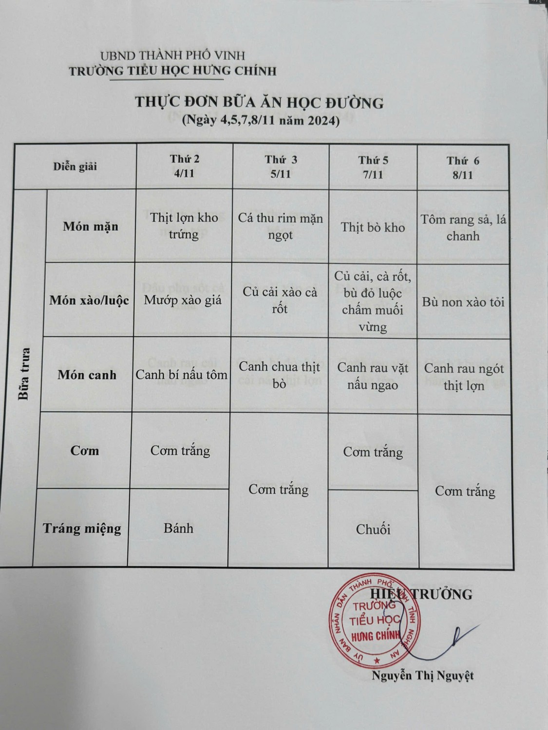 THỰC ĐƠN BỮA ĂN HỌC ĐƯỜNG