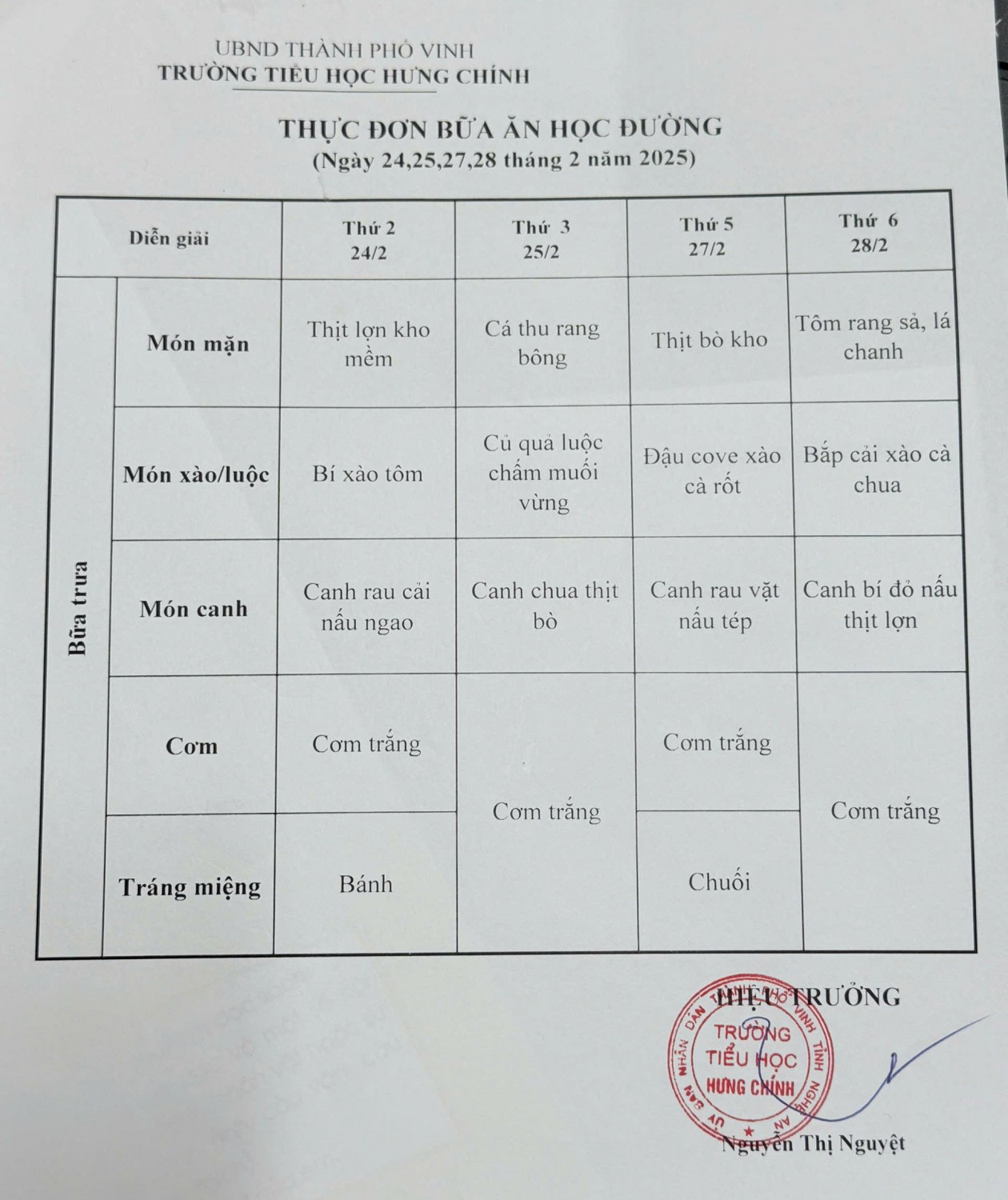 THỰC ĐƠN BỮA ĂN HỌC ĐƯỜNG