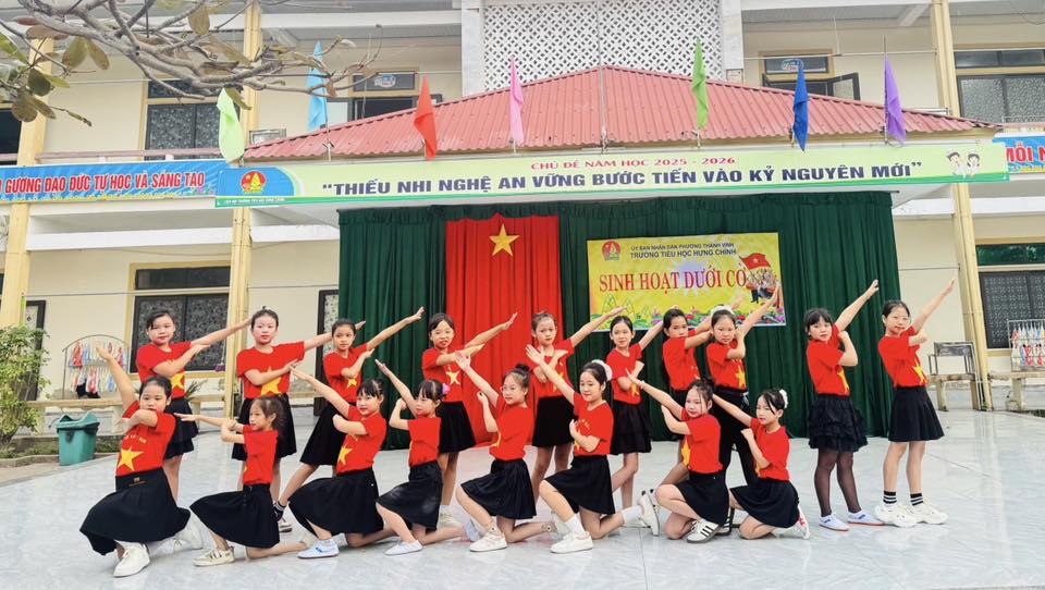 Buổi sinh hoạt diễn ra trang nghiêm với các tiết mục văn nghệ giàu cảm xúc: Khát vọng tuổi trẻ – Rừng xanh vang tiếng Ta Lư – Một vòng Việt Nam – Như có Bác trong ngày vui đại thắng (lớp Nhi đồng 2B) Chúng em hành quân theo bước chân những người anh hùng (Chi đội 4B) Mãi mãi khúc quân hành (Chi đội 4C) Viết tiếp câu chuyện hòa bình do bạn Hà Thương & Minh Đức (Chi đội 5A) Kiếp sau vẫn là người Việt Nam (Chi đội 5E) Cháu hát về đảo xa được thể hiện bởi bạn Anh Thư (lớp 3D) Buổi Sinh hoạt dưới cờ khép lại trong niềm tự hào và nhiều dư âm đẹp, để lại ấn tượng sâu sắc trong lòng thầy và trò Trường Tiểu học Hưng Chính