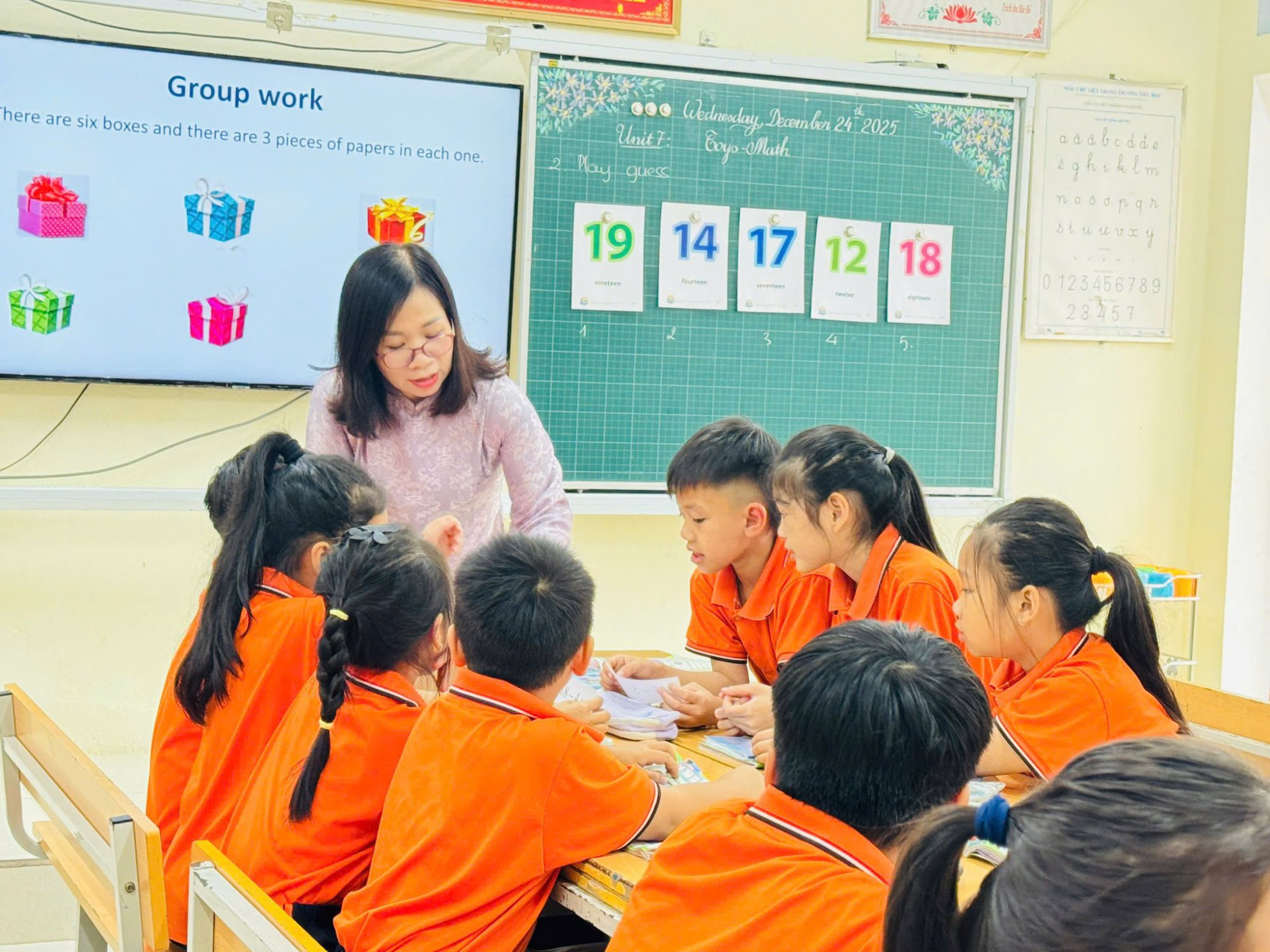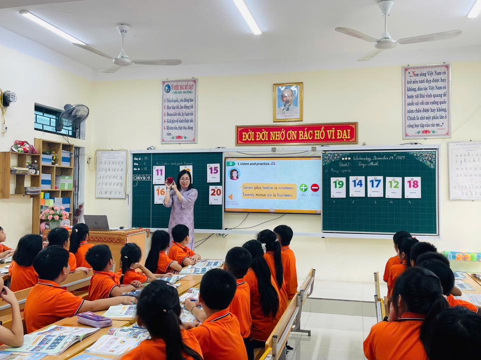 CHUYÊN ĐỀ TOÁN TIẾNG ANH Hôm nay, lớp 3A và cô giáo Lan Hương đã có một tiết học vô cùng thú vị với bài học "Unit 7: Toys - Math". Tiết dạy được tổ chức giúp học sinh vừa rèn luyện kỹ năng Tiếng Anh vừa vận dụng kiến thức Toán học thông qua các hoạt động học tập sinh động. Học sinh tham gia tích cực, hứng thú học tập, phát triển tư duy và sự tự tin trong giao tiếp. Tiết học diễn ra nhẹ nhàng, hiệu quả, góp phần nâng cao chất lượng dạy học theo định hướng đổi mới. Cùng nhìn lại những khoảnh khắc đáng nhớ trong tiết học này nhé!